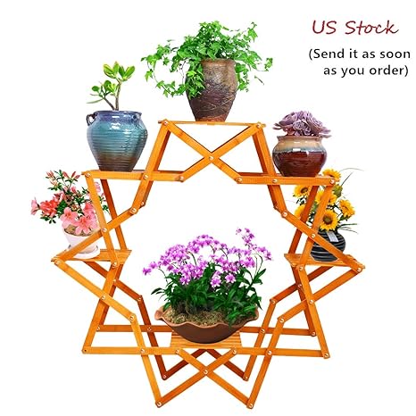 Hebensi Wooden Flower Stand Six Tier Planter Display Creative Design Indoor Outdoor Rack Sturdy Construction Foldable Plant Stand